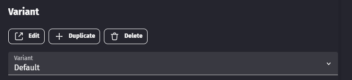 • Open the object editor and duplicate the default variant by clicking on the Duplicate button below the Variant title.