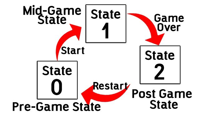 - First state or the initial state is when the game hasn't started yet and it requires the user to start the game. We are going to refer to this state using the value 0.
