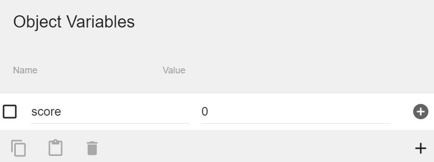 A Score system is a necessary element in every game. Adding this to our game is very easy as we don't need to add any new events. We are going to edit some of the events that we have already created to accommodate this system. We want the score to start from 0 every time the game starts. The score keeps updating until the Game Over state is reached. First, let's make an object variable to store this score value.